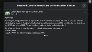 Qendra Kombëtare për Menaxhim Kufitar e Kosovës (QKMK) ka njoftuar se, sipas burimeve të hapura dhe ende të paverifikuara, nesër (21 prill 2026) pritet të mbahet një protestë në Jarinjë, e shoqëruar me bllokim të një pjese të autostradës drejt Republikës së Kosovës, në territorin e Serbisë.