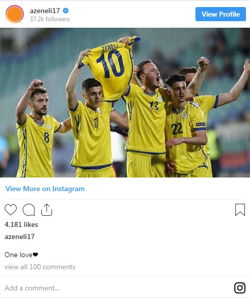 Lëndimi i Arbër Zenelit në ndeshjen kundër Malit të Zi, i cili lëndim do ta lë atë jashtë për disa muaj, ka bërë një postim në rrjetet sociale pas këtij dedikimi.