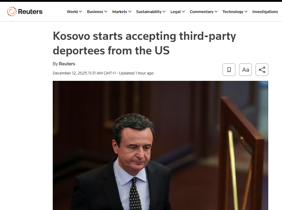 Reuters vuri në dukje se kjo është pjesë e përpjekjeve të Uashingtonit për të gjetur partnerë ndërkombëtarë që të pranojnë persona të treta shtete, ndërkohë që Kosova ka treguar gatishmëri edhe për marrëveshje të ngjashme me Danimarkën dhe Britaninë e Madhe. /Gazeta10