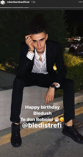 “Urime datëlindja Bledush, të don Robqiqi”, shkroi Roberti në IntaStory, ku ka publikuar dhe një fotografi të Blendit me kostum dhe këmishë.