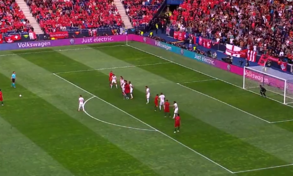 Cristiano Ronaldo shënoi për 1:0 në minutën e 25-të duke realizuar një gol fantastik nga goditja e dënimit.