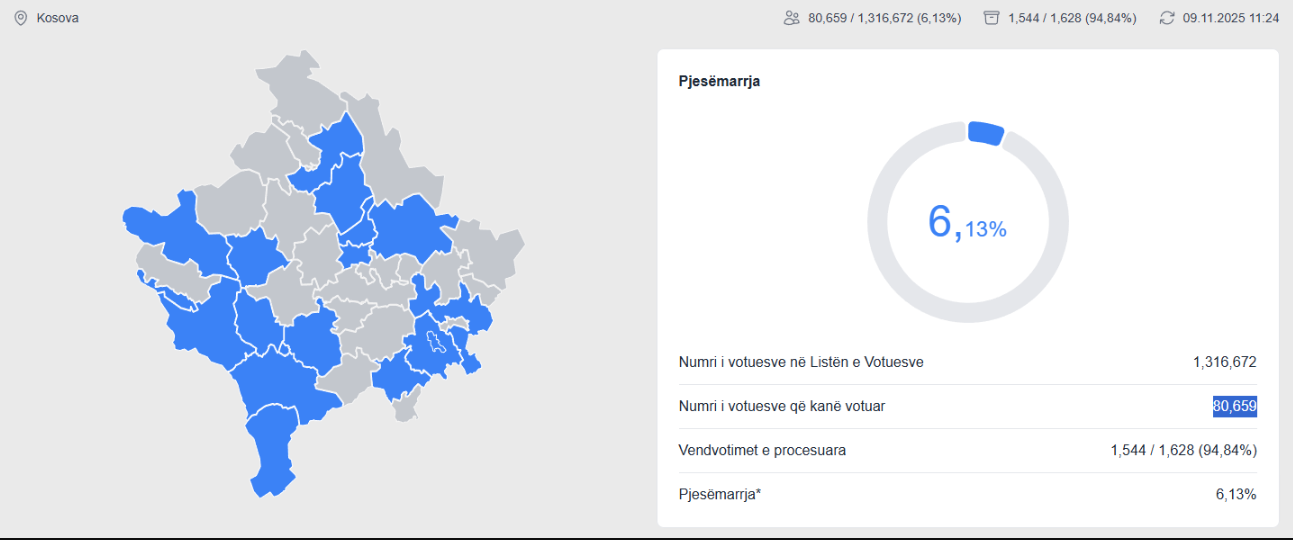 Komisioni Qendror i Zgjedhjeve po vazhdon publikimin e të dhënave nga numri i qytetarëve që kanë marrë pjesë deri në ora 13:00 në procesin e votimit. Në 18 komunat ku po organ...