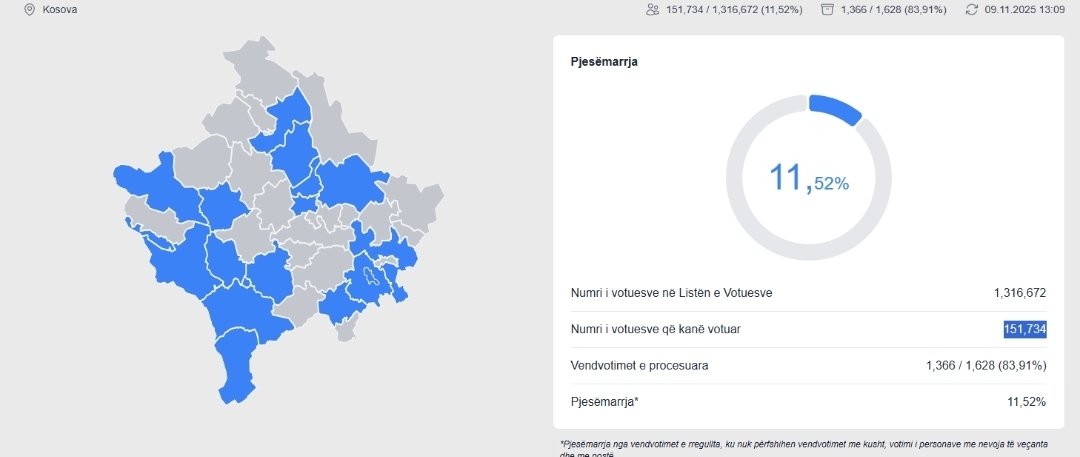 Komisioni Qendror i Zgjedhjeve po vazhdon publikimin e të dhënave nga numri i qytetarëve që kanë marrë pjesë deri në ora 13:00 në procesin e votimit