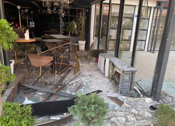 Pamje nga shpërthimi në një lokal tek Rruga C, në Prishtinë. Një shpërthim ndodhi në orët e para të mëngjesit sot në rrugën C brenda një lo...