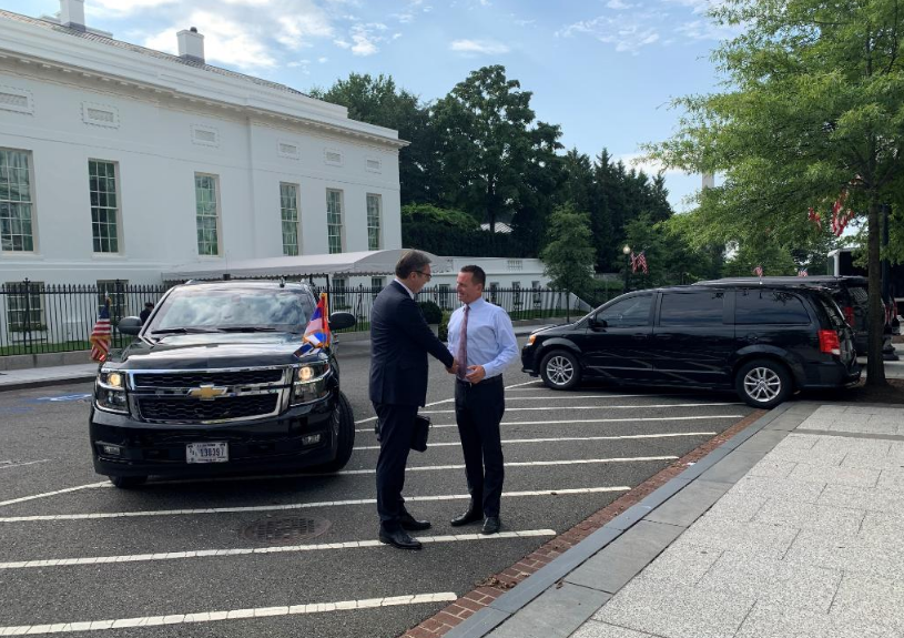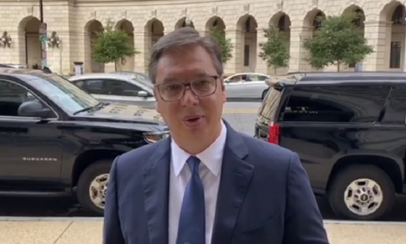 Sot, në Shtëpinë e Bardhë do të takohen delegacioni i Kosovës dhe ai i Serbisë. Presidenti i Serbisë Aleksandër Vuciq pak para hyrjes në ta...