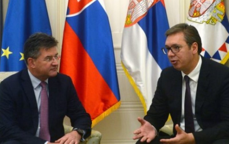 Ka filluar takimi mes Aleksandar Vuҫiqit dhe Mirosllav Lajçakut. Presidenti i Serbisë, Aleksandar Vuçiq dhe emisari special evropian për di...