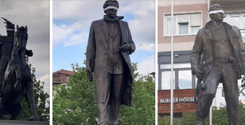 Persona të panjohur kanë mbuluar sytë e shtatoreve në Prishtinë. Tri shtatoret që gjenden nëpër sheshet e Prishtinës, ajo e heroit Zahir P...