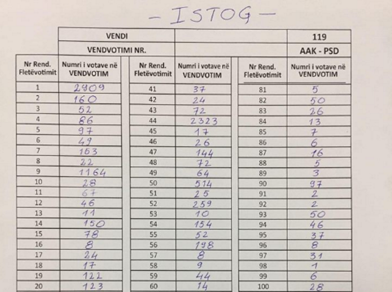 Kandidati për deputet, Bekë Berisha, ka publikuar një listë të votave në Istog të kandidatëve për deputetë nga koalicioni AAK – PSD. Ai thotë se kjo listë është 98 për qind e saktë.