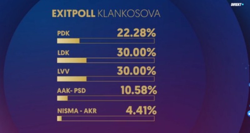 Në ora 19:00 janë mbyllur të gjitha qendrat e votimit në gjithë Kosovën. Sipas rezultatit të exit pollit të Klan Kosovës, 32 ulëse në Kuve...