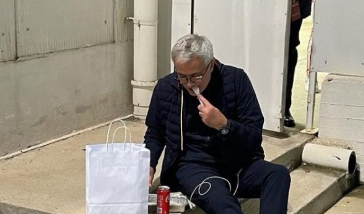 Mourinho ha darkë në shkallët e stadiumit pas fitores së Romës kundër Cagliarit. Trajneri portugez, Jose Mourinho, pas fitores 1-2 ndaj Cagliarit, ka ndarë një fotografi në ll...