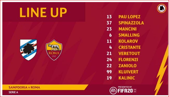 Janë publikuar formacionet zyrtare të ndeshjes Sampdoria – Roma.