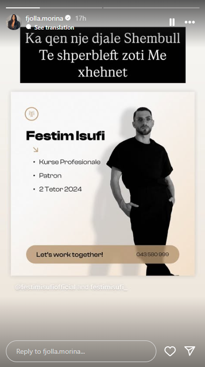 Në story-n e saj, Fjolla ka postuar një foto të Festim Isufit të shoqëruar me fjalët prekëse: