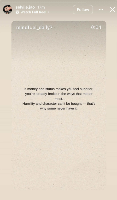 Orë me parë Selvija ka reaguar me një postim, ku ndjekësit e kanë parë si një mesazh të fortë.