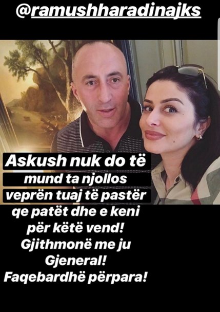 Haradinaj i cili njihet si komandant lufte dhe ka simpatinë e popullit për kontributin e tij në ushtrinë Çlirimtare të Kosovës, ka edhe përkrahjen e komunitetit artistik.