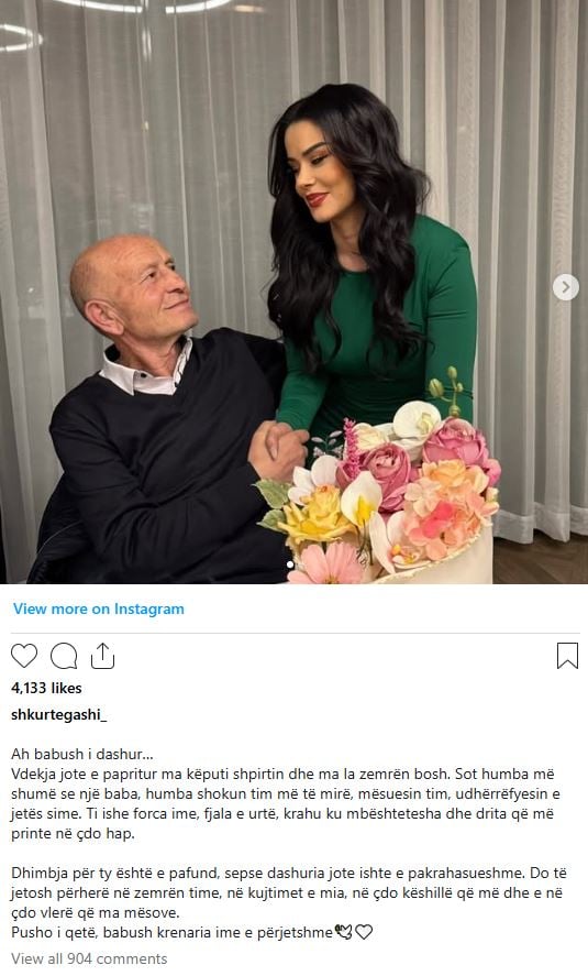 Në mesazhin e saj prekës, Gashi ka nënvizuar se babai i saj do të jetojë përherë në zemrën dhe kujtimet e saj, në çdo këshillë që i ka dhënë dhe në çdo vlerë që i ka mësuar gjatë jetës.