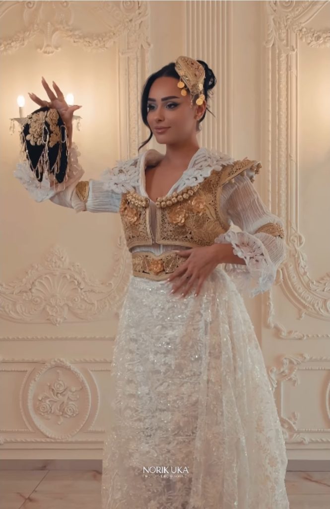 Ajo ka publikuar në rrjetet sociale disa fotografi ku shfaqet e veshur me kostum tradicional shqiptar, duke përcjellë një imazh të fuqishëm të identitetit kombëtar dhe bukurisë autentike.
