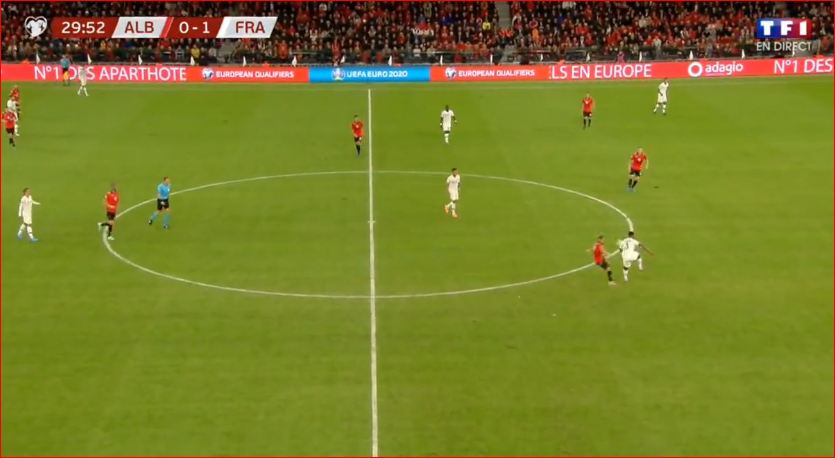 Rezultati u zhbllokua në minutën e tetë, shënoi mesfushori i Bayern Munich, Corentin Tolisso, duke ia bërë sefte në “Air Albania”.