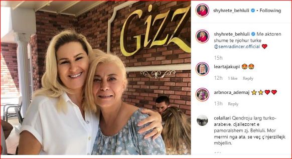 Në rrjetin social Instagram, këngëtarja ka publikuar një fotografi në të cilën shihet pranë aktores Semra Dinçer. “Me aktoren shumë të njohur turke Semra Dinçer”, ka shkruar Shyhretja krahas fotografisë.