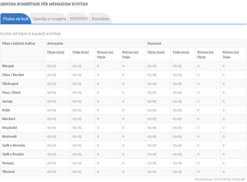 Qendra Kombëtare për Menaxhimin Kufitar ka përditësuar të dhënat mbi fluksin në pikat kufitare.