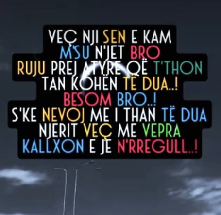 “S’ke nevojë me i thanë ‘të dua’ njerit, veç me vepra kallëzon se je n’rregull.”