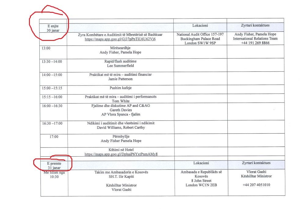 Stafi tjetër i delegacionit është kthyer në Prishtinë më 1 shkurt, ndërsa Auditorja e Përgjithshme është kthyer vetëm më 3 shkurt 2025, duke qëndruar shtatë ditw ditë në Angli, ose gjashtë ditë zyrtare (perjashtuar 27 shkurtin- ditën e arritjes), ndonëse në përgjigjen zyrtare ZKA flet për një agjendë pesëditore për të.