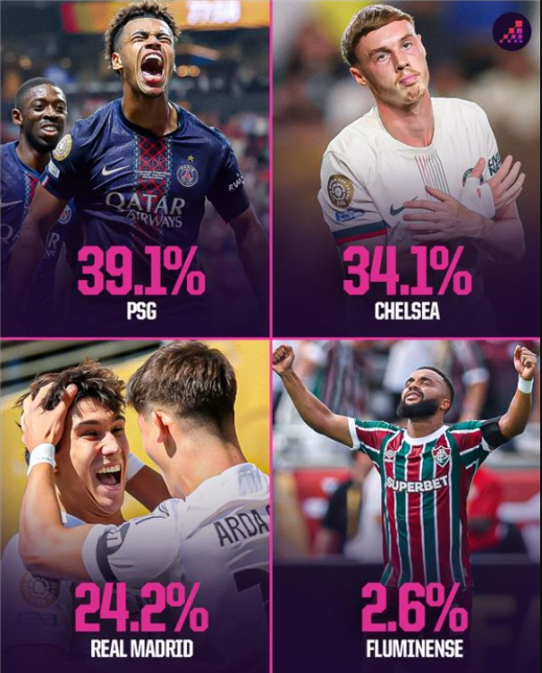 Gjatë gjithë turneut, Opta ka mbledhur të dhëna pas çdo ndeshjeje për të llogaritur fituesin e mundshëm në SHBA. Sipas sistemit, PSG tani është favoriti kryesor për të ngritur trofeun.