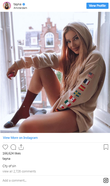Tayna gjithashtu vazhdon të jetë shumë e pëlqyer nga publiku, me ç’rast është renditur edhe në mesin e 20 këngëtarëve shqiptarë më të ndjekur në Instagram, ku numëron hiç më pak se 1.1 milion njerëz.