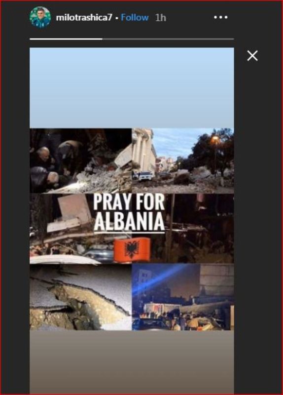 Pas kësaj tragjedie që përfshiu qytetet e Shqipërisë, prej së largu kanë reaguar edhe ylli i Kombëtares së Kosovë, Milot Rashicadhe, përcjell ORAinfo.