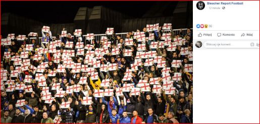 Në prag të ndeshjes, gjatë intonimit të himnit të Anglisë, të gjithë të pranishmit në stadium ngritën flamujt e Anglisë.