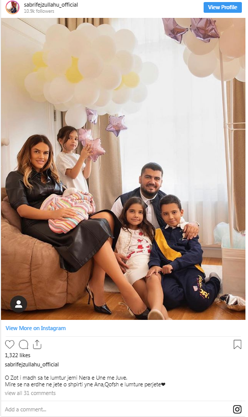 “O Zot i madh sa te lumtur jemi Nera e Une me Juve. Mire se na erdhe ne jete o shpirti yne Ana,Qofsh e lumture perjete❤️”, ka shkruar këngëtari pranë një fotografie të publikuar Instagram.