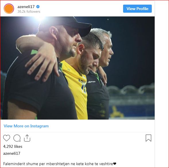 Zeneli ka falënderuar të gjithë për mbështetjen pas lëndimit të rëndë që pësoi në Podgoricë ndaj Malit të Zi.