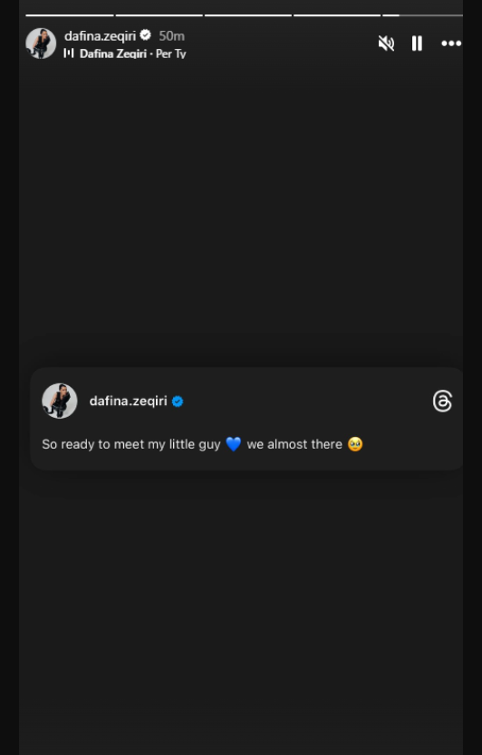 Në një fotografi të publikuar në InstaStory, ajo shfaqet me barkun e rrumbullakosur dhe përshkrimin e shkurtër por shumë të qartë: “Akoma shtatzënë”.