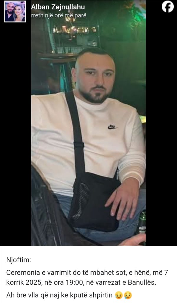 Lajmin e kanë konfirmuar familjarët e të ndjerit, të cilët bën të ditur se varrimi i 27 vjeçarit do të behët në varrezat e Banullës.
