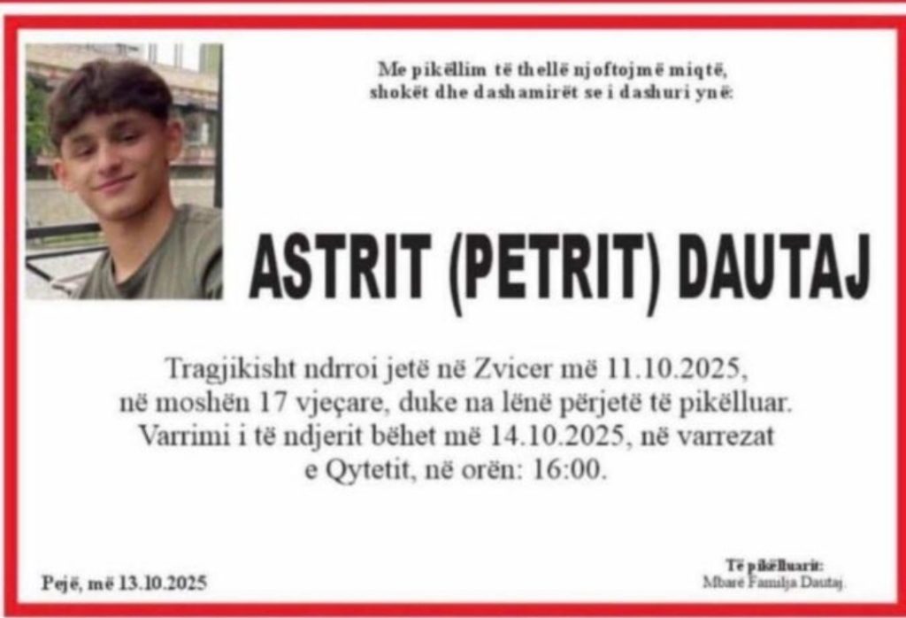 Sot varroset 17-vjeçari Astrit Dautaj, i cili vdiq tragjikisht në Zvicër.