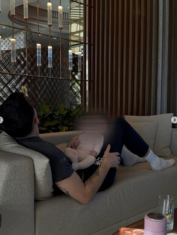 Në postim shihet se në çdo foto e ka mbuluar fytyrën e vogëlushes, duke u ruajtur nga “syri i keq”.