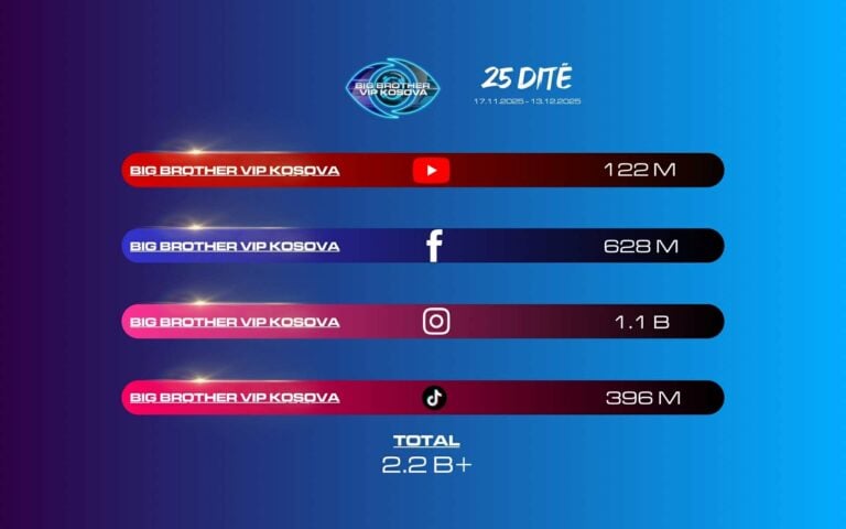 Këto shifra mbresëlënëse e konfirmojnë Big Brother VIP Kosova 4 si një fenomen mediatik, i cili jo vetëm që dominon ekranin televiziv, por edhe rrjetet sociale, duke krijuar një lidhje të fortë dhe të drejtpërdrejtë me publikun.
