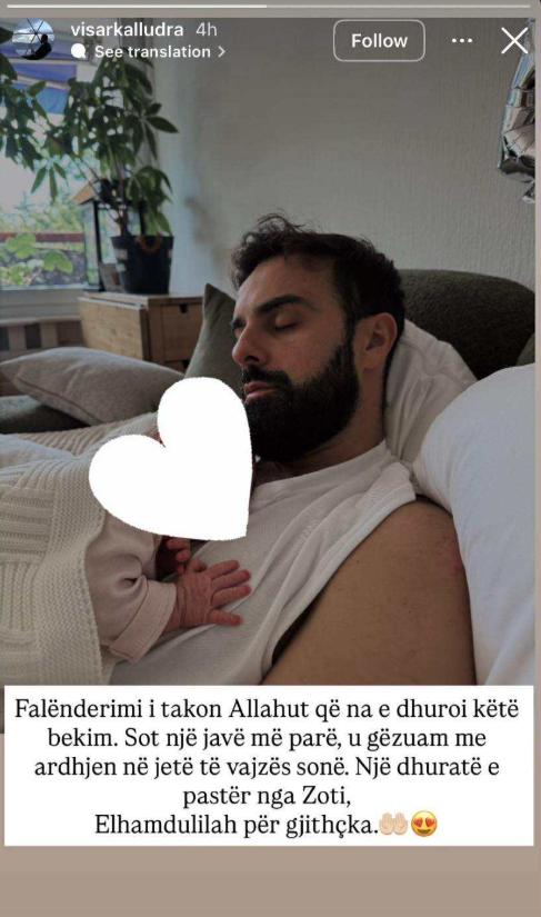 “Falënderimi i takon Allahut që na e dhuroi këtë bekim. Sot një javë më parë, u gëzuam me ardhjen në jetë të vajzës sonë. Një dhuratë e pastër nga Zoti. Elhamdulilah për gjithçka” është shprehur ai.