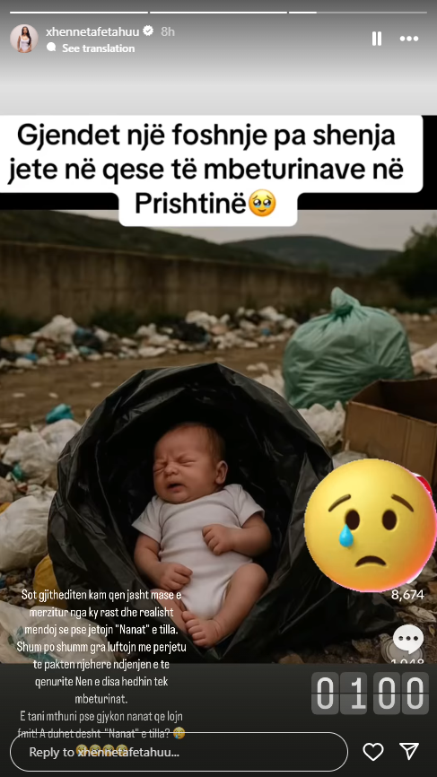 “Sot gjithë ditën kam qenë jashtë mase e mërzitur nga ky rast dhe realisht mendoj se pse jetojnë ‘nënat e tilla’,” ka shkruar ajo në profilin e saj në rrjetin social Instagram, duke mos fshehur indinjatën dhe trishtimin që i ka shkaktuar lajmi i hidhur. Ajo ka vënë në pah zemërimin që ndjen ndaj grave që, siç shprehet, nuk e çmojnë dhuratën më të madhe që mund t’u jepet në jetë – mundësinë për të qenë nënë.