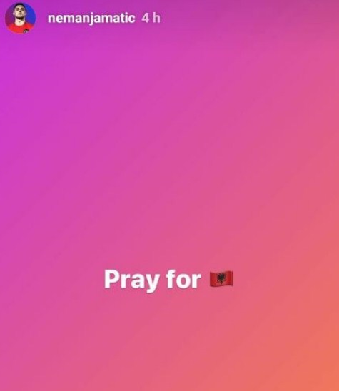 Nemanja Matic reagoi pas tërmetit në Shqipëri duke publikuar një mesazh të mbështetjes në rrjete sociale.