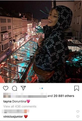 Tayna publikoj disa fotografi nga Linzi i Austrisë ndërsa nuk mungoj as komenti i Vinicius Jr. i cila la një figurë zemre përkrah postimit të saj.