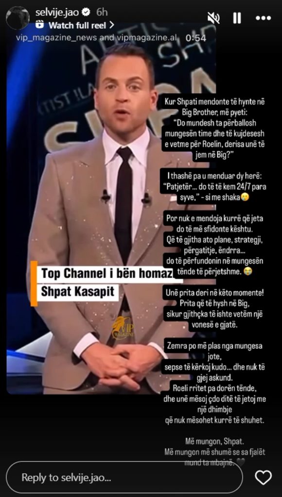 Në lidhje me këtë reagoi edhe bashkëshortja e tij, Selvije Jao, e cila tregoi brengën që kishte Shpati për t’u bërë pjesë e këtij formati.
