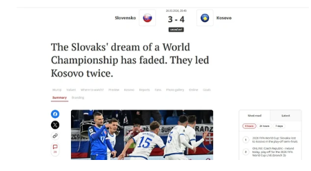 “Një ndër pjesët e dyta më të këqija u rikthye në shpresë të madhe për ta. Sllovakia më fund pëson nga Kosova”, raporton mediumi në fjalë.