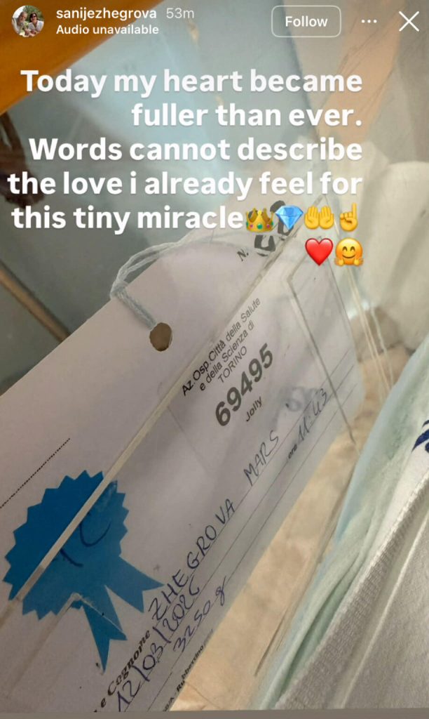 Në një InstaStory, ajo publikoi një fotografi nga spitali dhe shprehu gëzimin e madh për ardhjen në jetë të foshnjës.