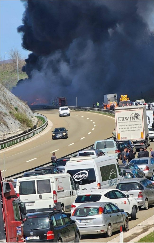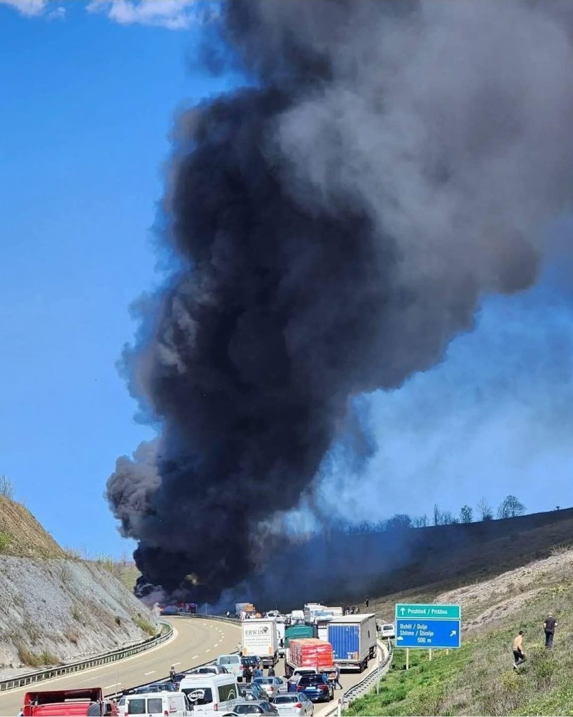Sipas pamjeve nga vendi i ngjarjes, dyshohet se një kamion është përfshirë tërësisht nga flakët, çka ka bërë që qarkullimi i automjeteve të vështirësohet mjaft shumë.